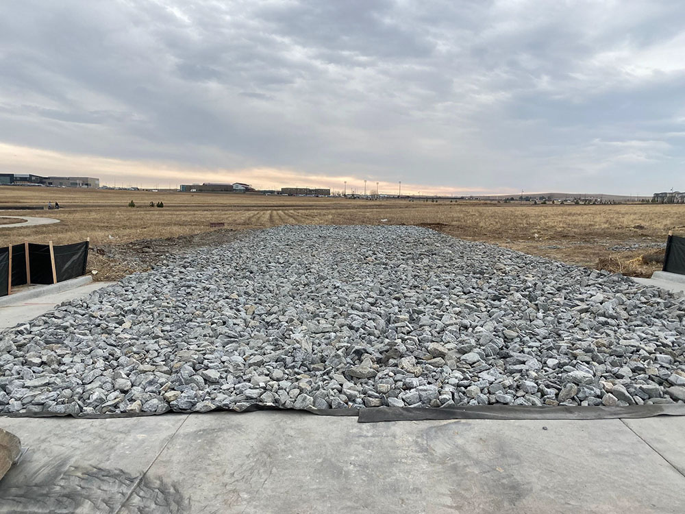 Provides stabilized construction site access where vehicles exit the site onto paved public roads, helps remove sediment (mud or dirt) from vehicles, reducing onto the paved surface.