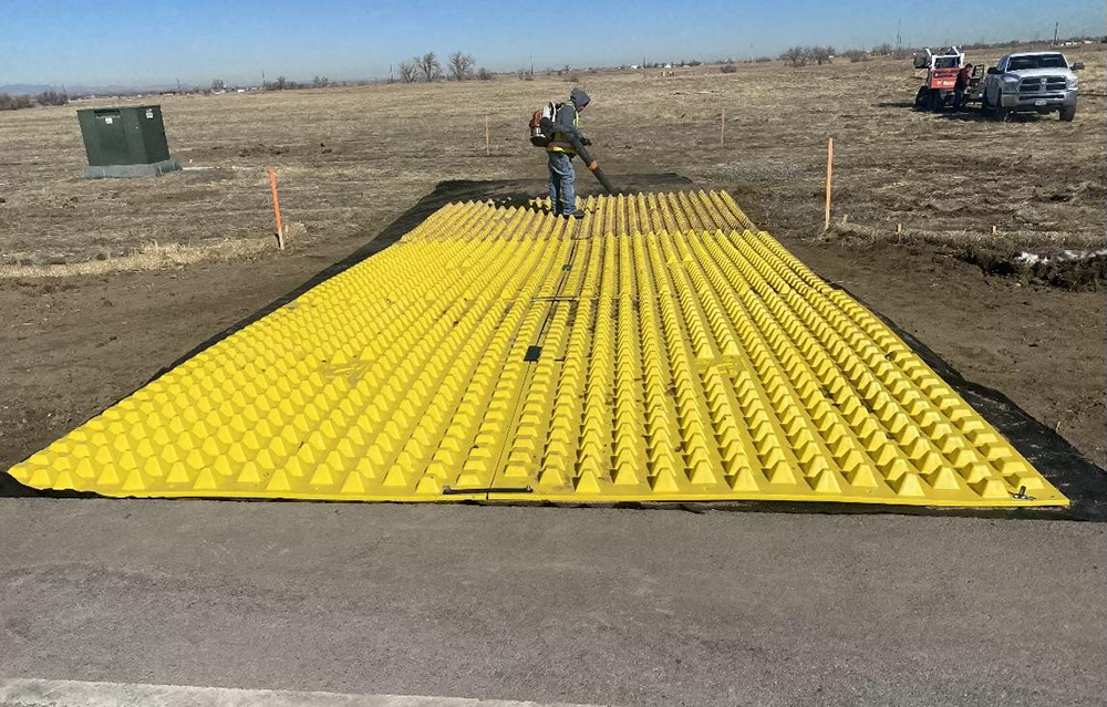 Create an instant construction entrance over virtually any type of surface, including asphalt, concrete, turf, marshy area, sand, mud, even ground, uneven ground, or similar and stop tracking mud, dirt, and foreign objects with the use of a FODS Mats control and stabilizing construction site entrances & exits.